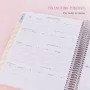 PLANEJAMENTO ANUAL: Visão completa do ano em 2 páginas, com mini calendários de janeiro a dezembro em tons suaves. Espaços pautados para anotar feriados, provas, viagens, projetos e datas importantes — tudo num único olhar.