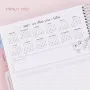 PLANEJAMENTO ANUAL: Visão completa do ano em 2 páginas, com mini calendários de janeiro a dezembro em tons suaves. Espaços pautados para anotar feriados, provas, viagens, projetos e datas importantes — tudo num único olhar.
